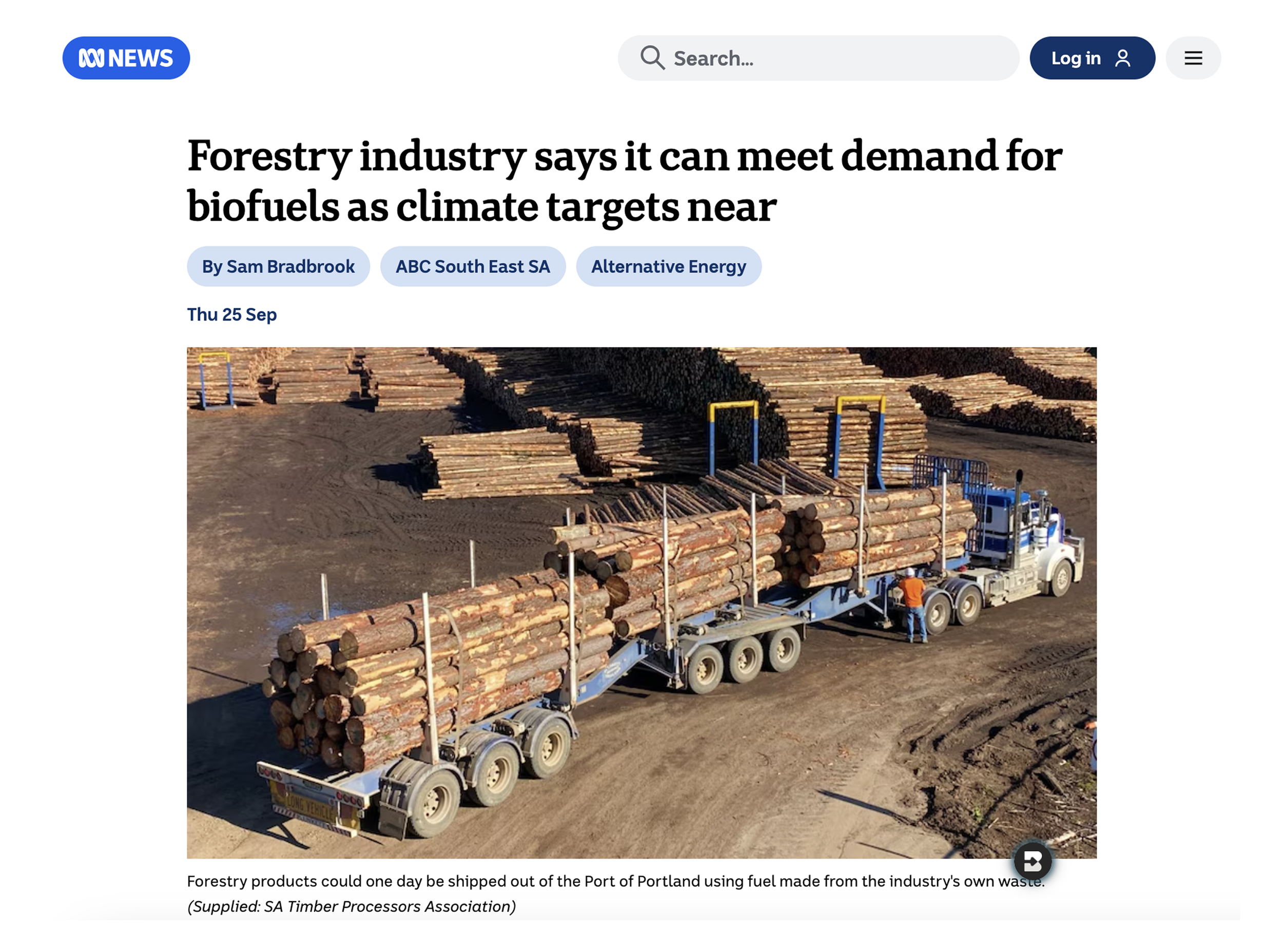 Thank you to ABC for featuring us! Read the full article here: https://www.abc.net.au/news/2025-09-25/forestry-wood-waste-into-biofuel-ships-planes-climate-targets/105806578