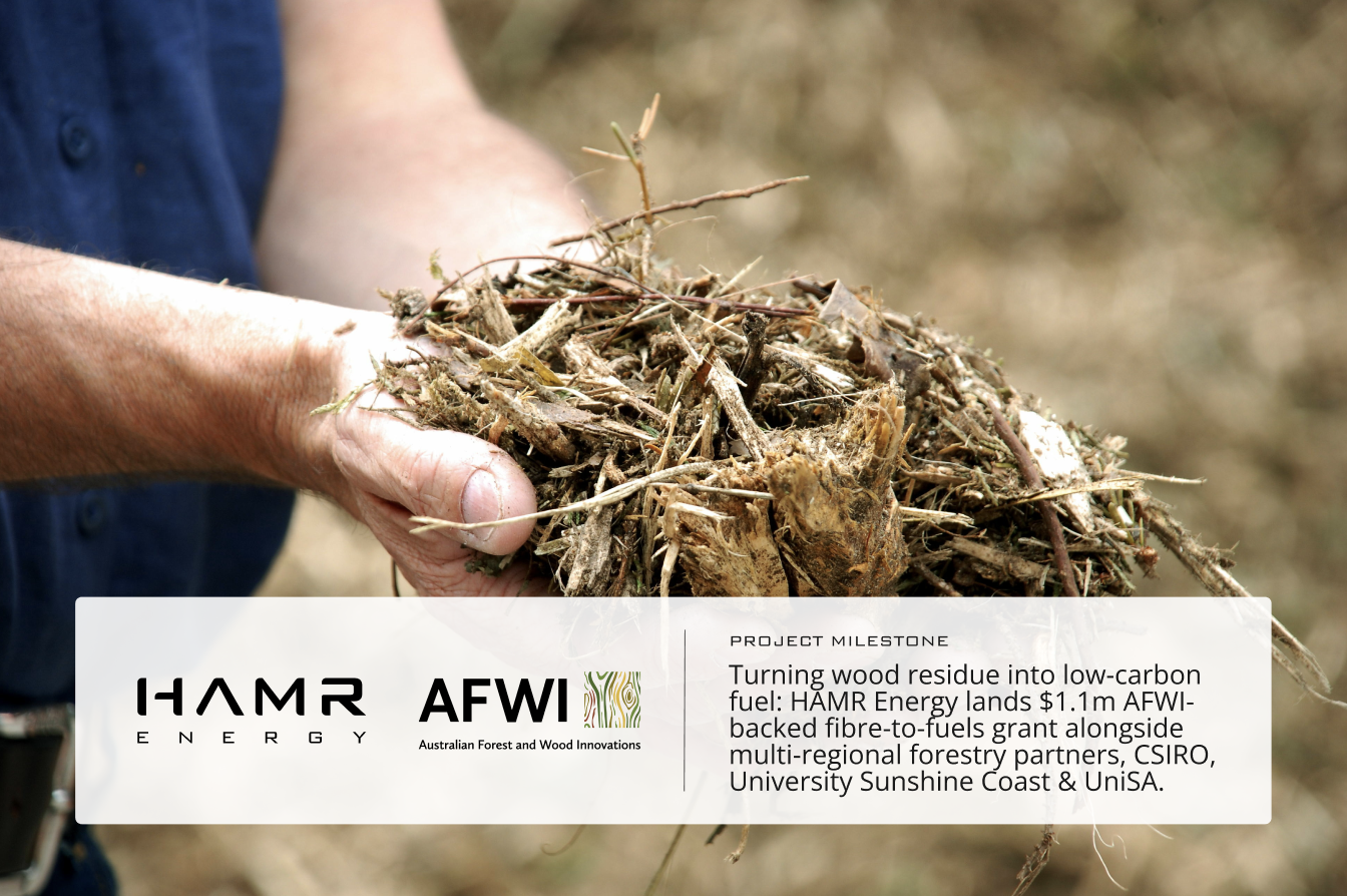 Leading low-carbon liquid fuels (LCLF) company HAMR Energy today announced it has been awarded a $1.1 million grant from the Australian Forest and Wood Innovations (AFWI) Centre for Sustainable Futures (AFWI-CSF)